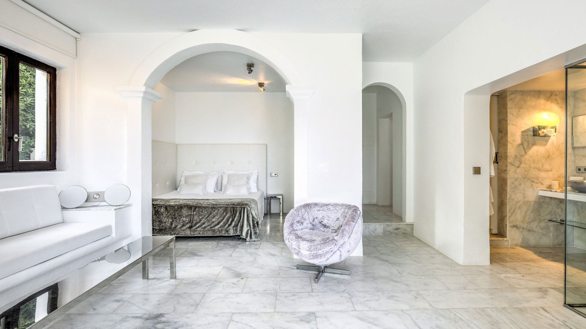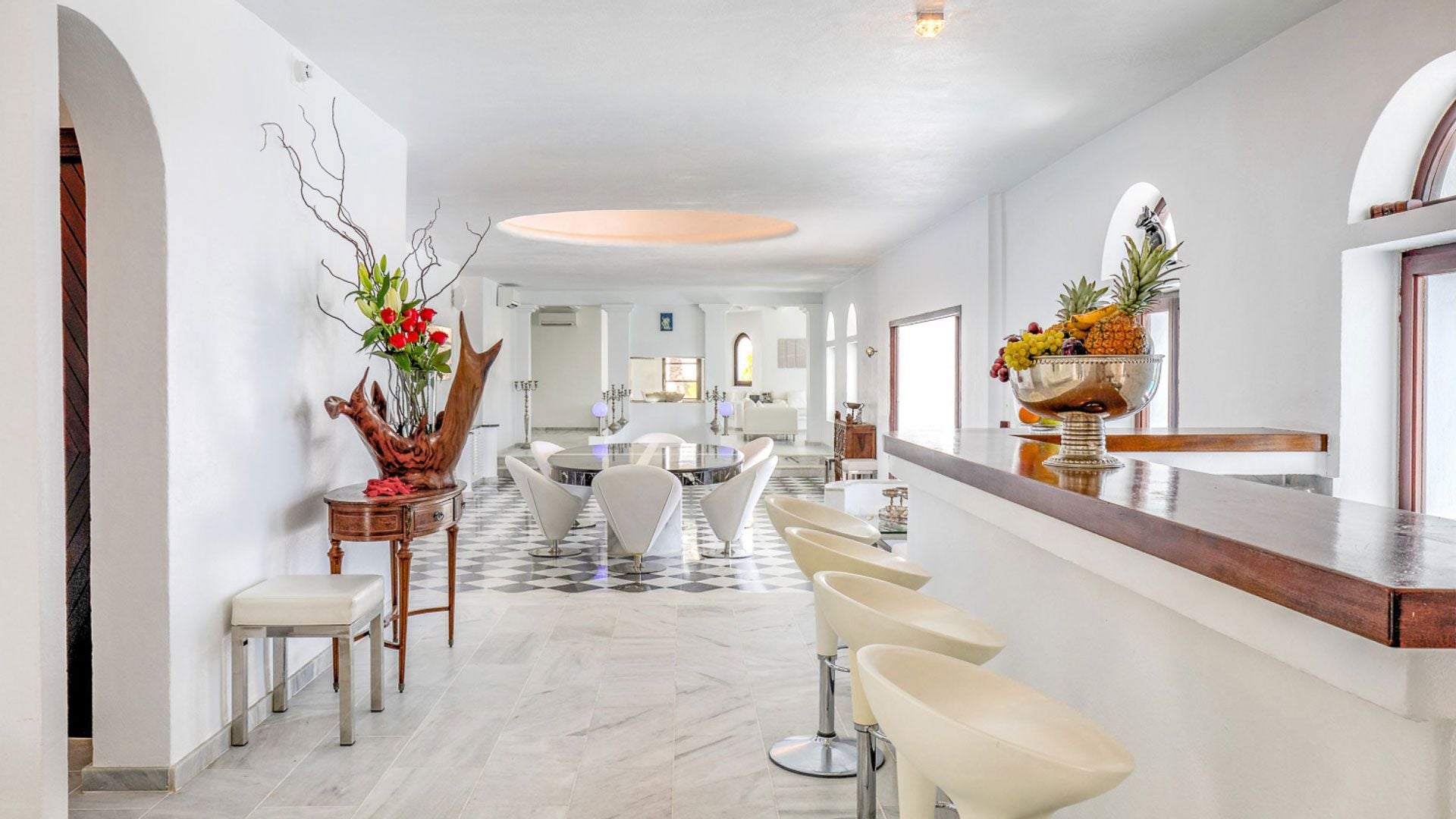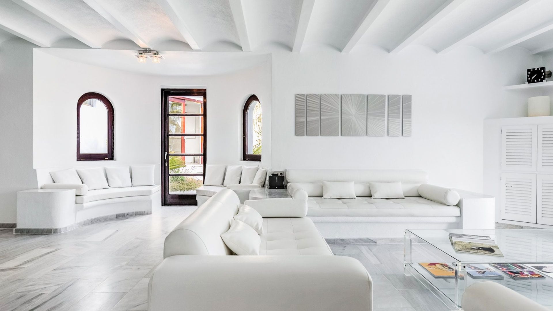 A stunning feature is also the villa's Sky Lounge that finds space on the rooftop and is completely equipped for cocktail parties or massage therapies under an aptly placed tent. Elite travellers will surely cherish the interior design with a classic elegance of surfaces bathed in pristine white coupled with marvellous marble surfaces