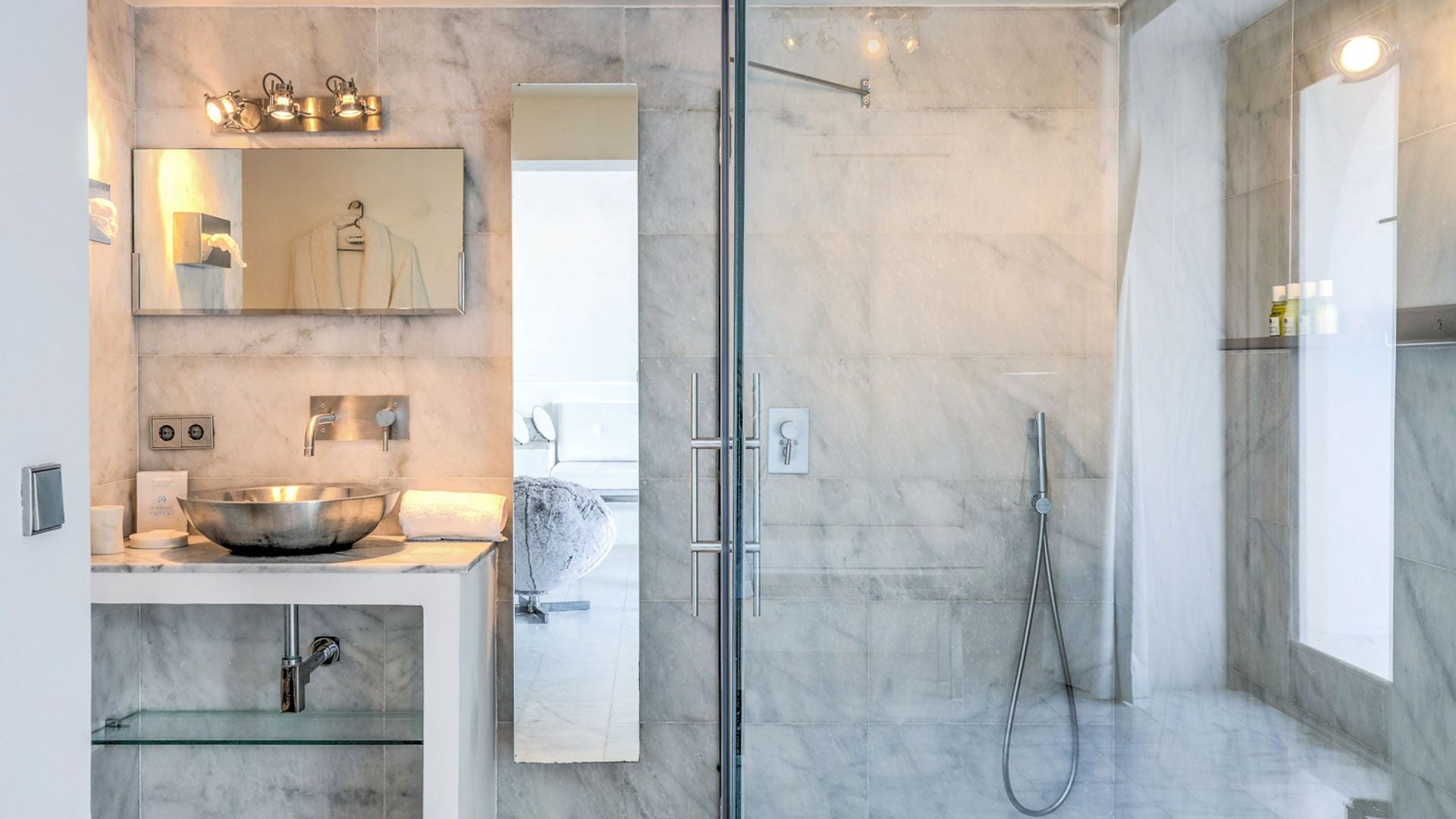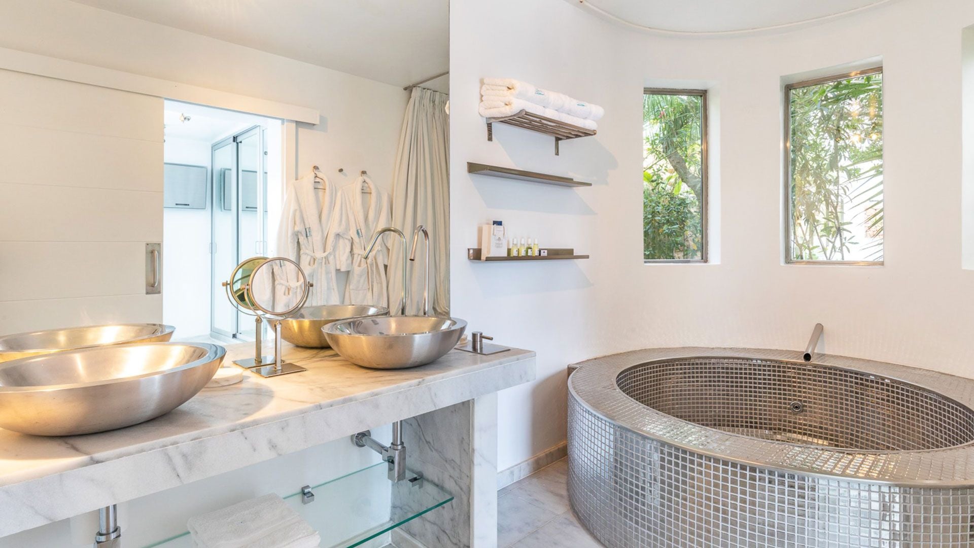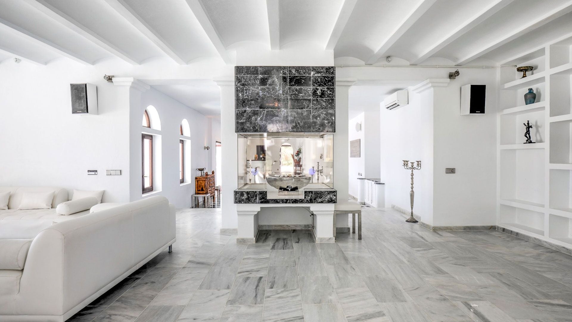 A stunning feature is also the villa's Sky Lounge that finds space on the rooftop and is completely equipped for cocktail parties or massage therapies under an aptly placed tent. Elite travellers will surely cherish the interior design with a classic elegance of surfaces bathed in pristine white coupled with marvellous marble surfaces