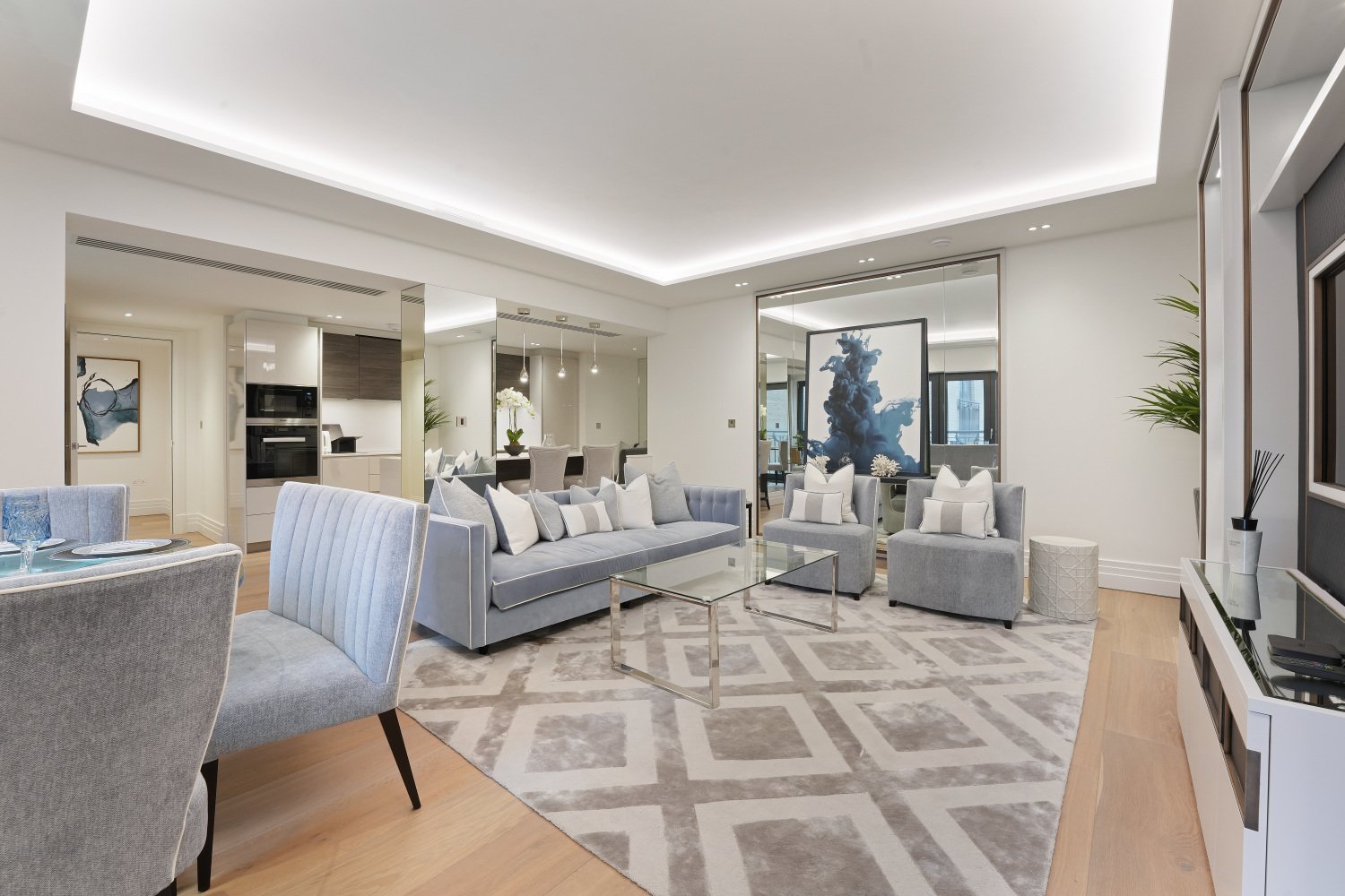 Immerse yourself in luxury with this sophisticated apartment, ideally located on an upper floor of a prestigious new-build development in Kensington Gardens Square.