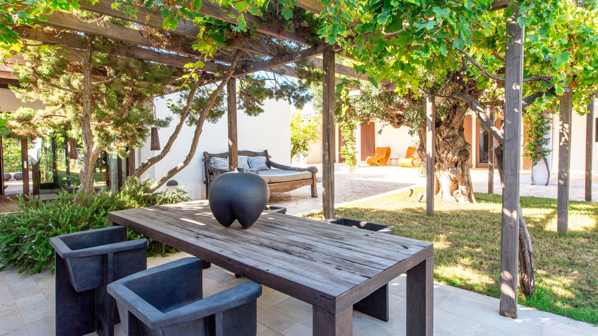 The gem of the property is the lush internal courtyard, immersed in vegetation with a small vineyard adding charm to the bucolic setting, in complete peace and zen.
