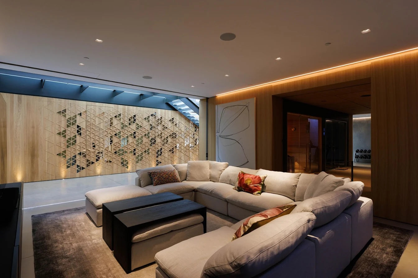 A temperature-controlled wine cellar offers ideal conditions for collectors and connoisseurs. The spa and wellness sanctuary elevates the concept of relaxation, featuring a sauna, steam room, fully equipped gym, and a float pod designed for ultimate rejuvenation.