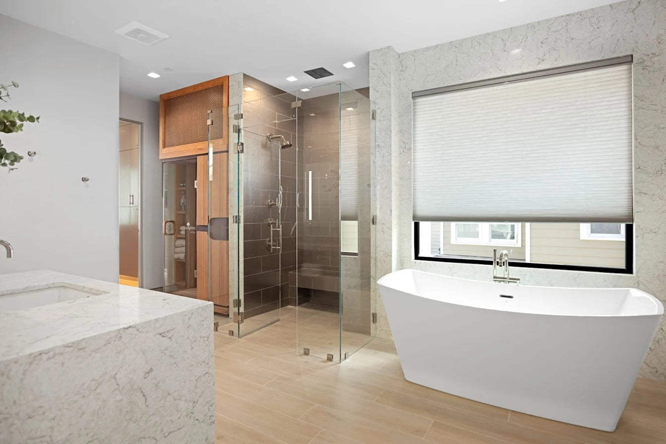 The palatial primary suite serves as a private sanctuary, featuring a spa-inspired bath with an infrared sauna, dual vanities, and two state-of-the-art walk-in closets designed to meet the highest standards of comfort and style.